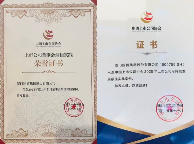 廈門(mén)國貿榮獲“2025上市公司董事會(huì )最佳實(shí)踐案例”和 “2025上市公司可持續發(fā)展最佳實(shí)踐案例”兩項榮譽(yù)