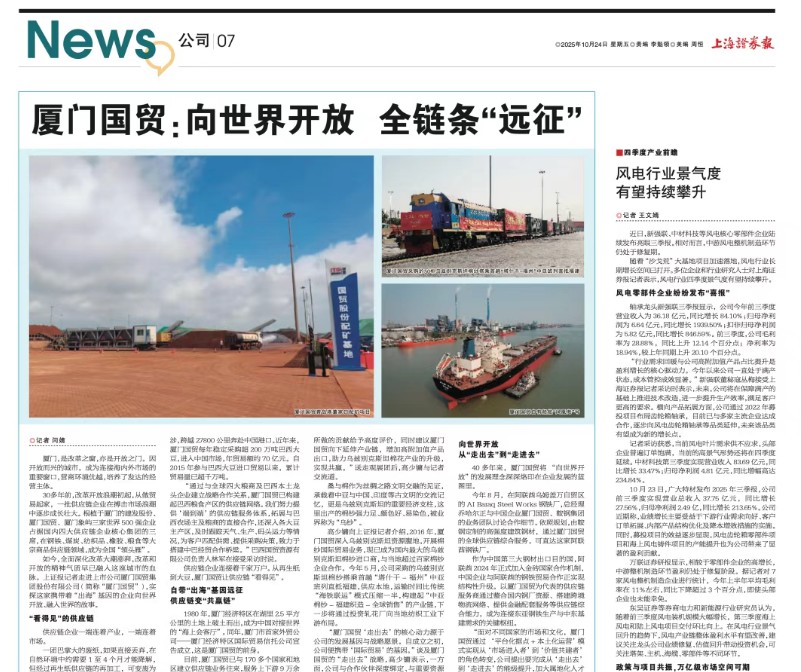 上海證券報 | 廈門(mén)國貿:向世界開(kāi)放 全鏈條“遠征”。
